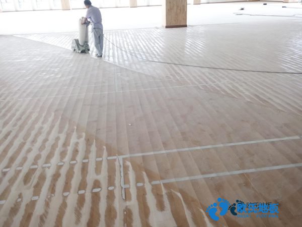 那就是體育木地板可以翻新二次使用。對體育木地板翻新,成本遠(yuǎn)遠(yuǎn)低于更換木地板,且工時(shí)較短。體育木地板翻新為客戶節(jié)省了很錢。體育木地板翻新的主要原理是使用打磨機(jī)將木地板表面的劃痕、污漬打磨掉,然后重新上漆、劃線。歐氏運(yùn)動(dòng)木地板工程師,翻新前對運(yùn)動(dòng)木地板進(jìn)行檢查。確定木地板的磨損程度,選用相應(yīng)的打磨工具。根據(jù)運(yùn)動(dòng)木地板劃痕密集程度及深度選擇砂帶進(jìn)行打磨,使表面光潔。打磨深度視地板磨損情況來定,一般范圍固定在0.5mm--2mm之間。運(yùn)動(dòng)地板翻新,將膩?zhàn)臃酆偷匕宸勰┱{(diào)和成與地板顏色相同的膩?zhàn)?。對寬度不超過2mm的縫隙或其他小缺陷進(jìn)行修繕。使用拋光機(jī)對運(yùn)動(dòng)木地板進(jìn)行拋光,并使用吸塵器對地板進(jìn)行清理。要求木地板表面無任何灰塵。